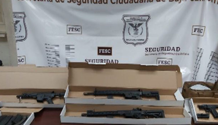 Mexicali, 3 de marzo de 2022.- Se ubicó un vehículo que en su interior había armas largas y cortas durante un recorrido de vigilancia de agentes de la Fuerza Estatal de Seguridad Ciudadana (FESC).
